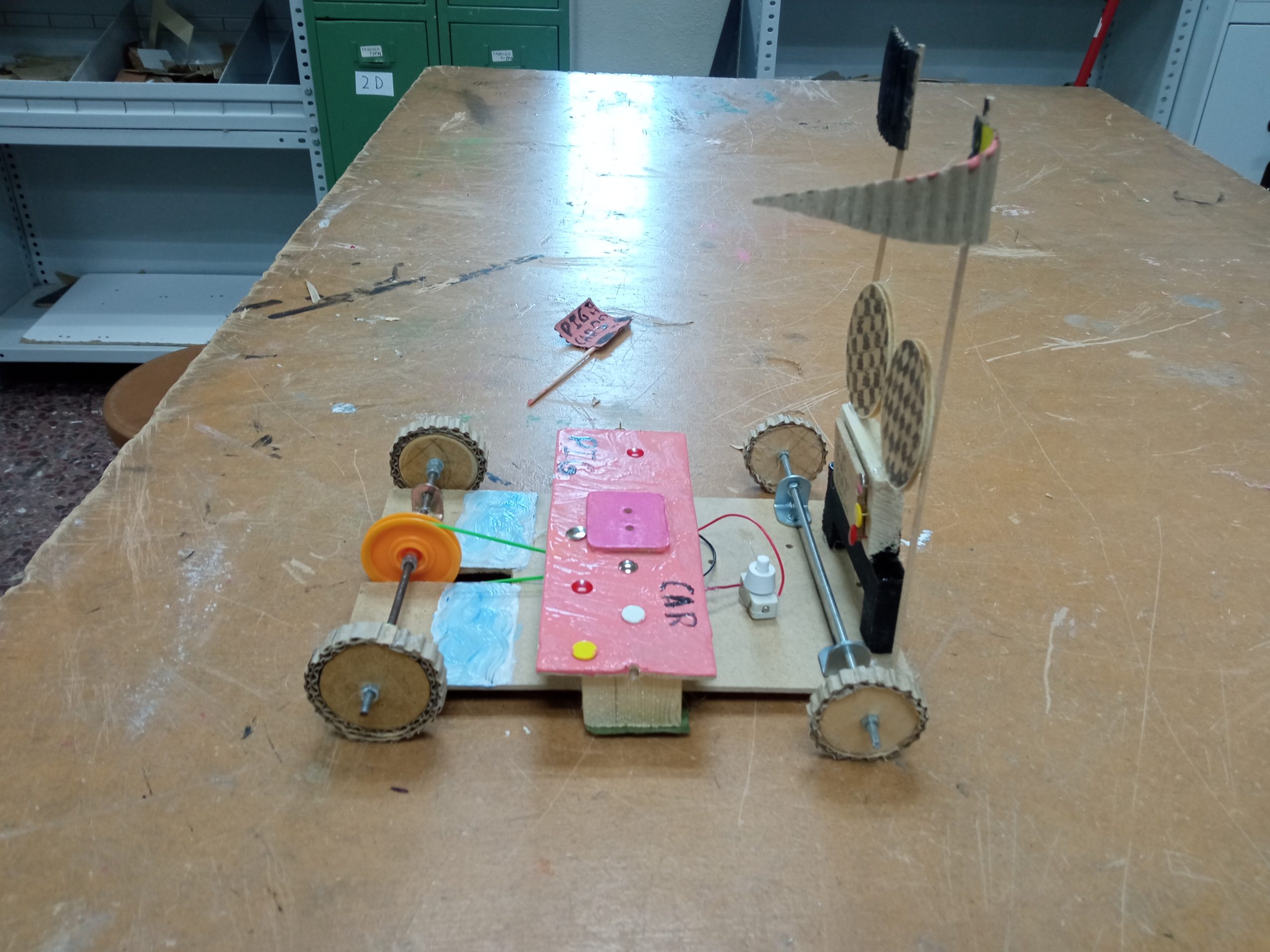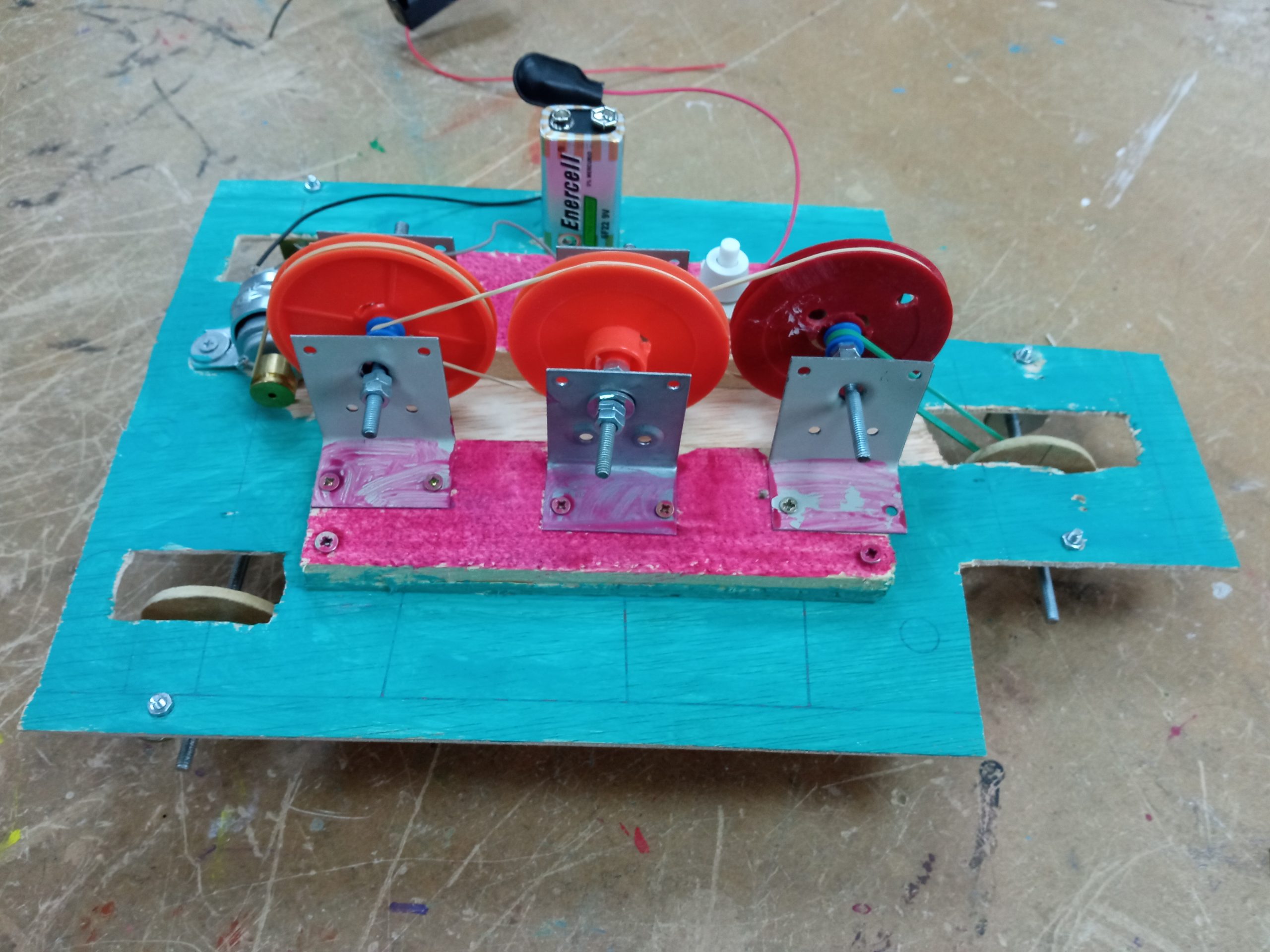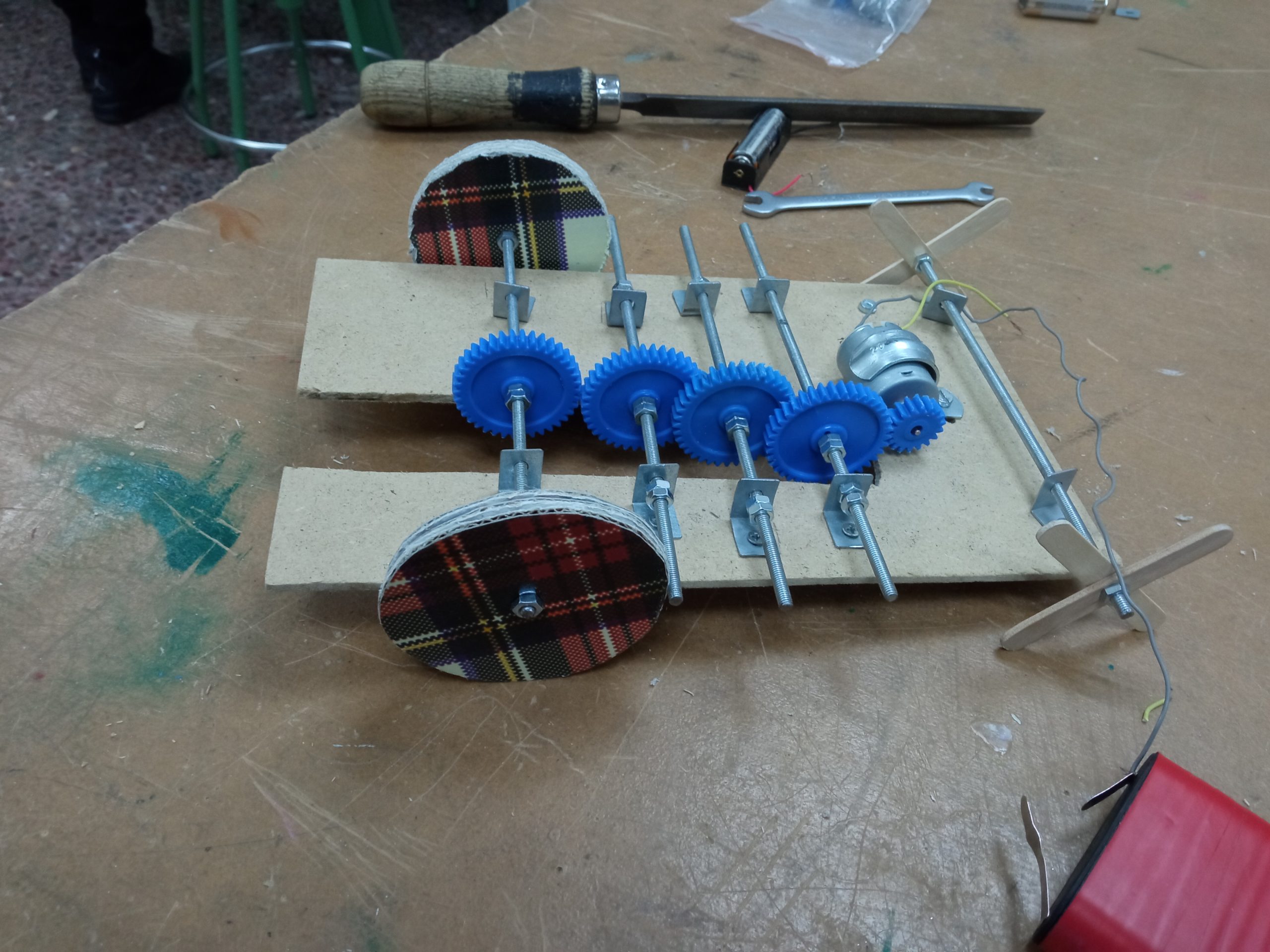 La realización del diseño y la elección de poleas o engranajes se dejó en manos de los grupos. A continuación podréis observar muchos ejemplos, con mayor o menor reducción.
