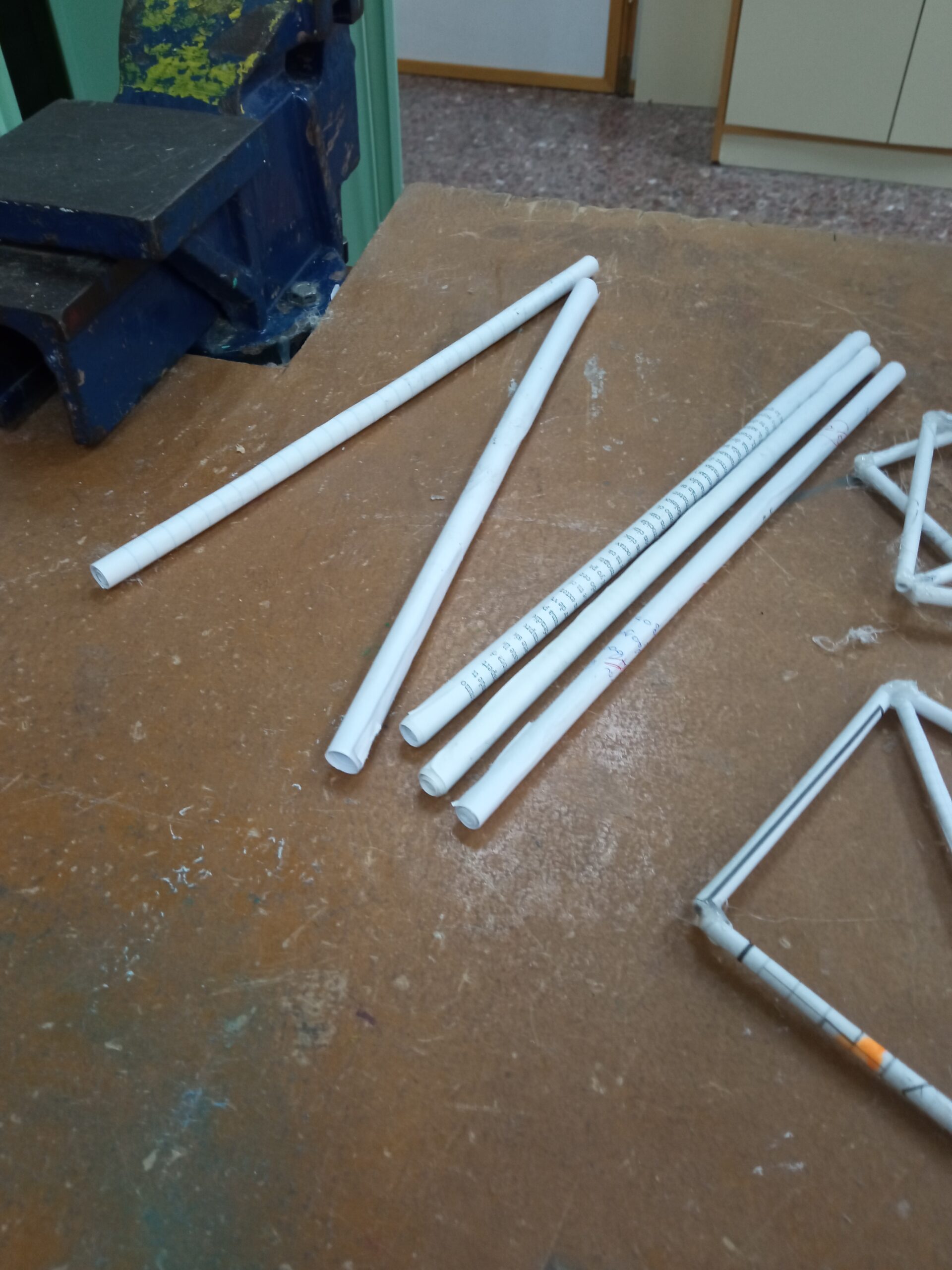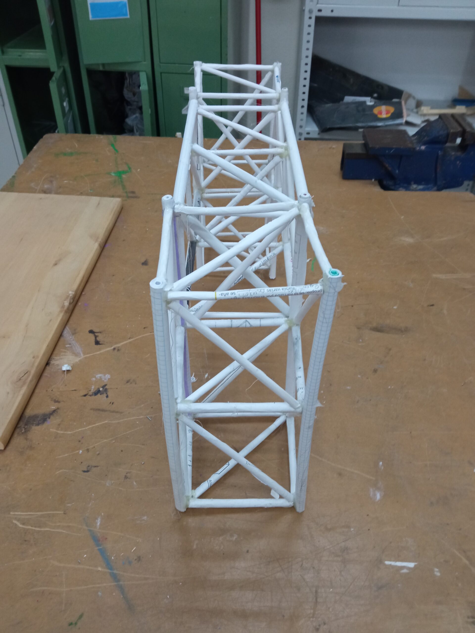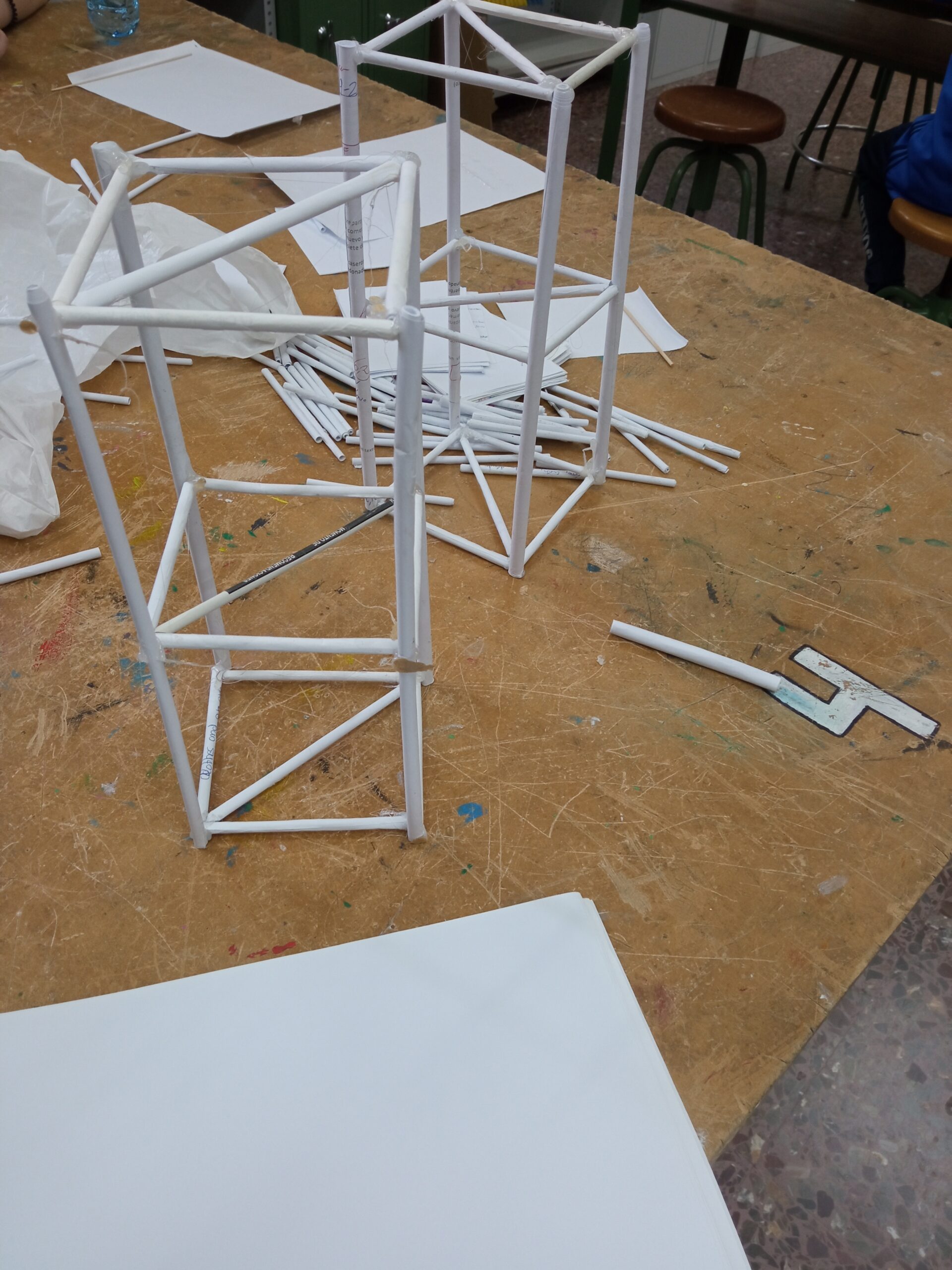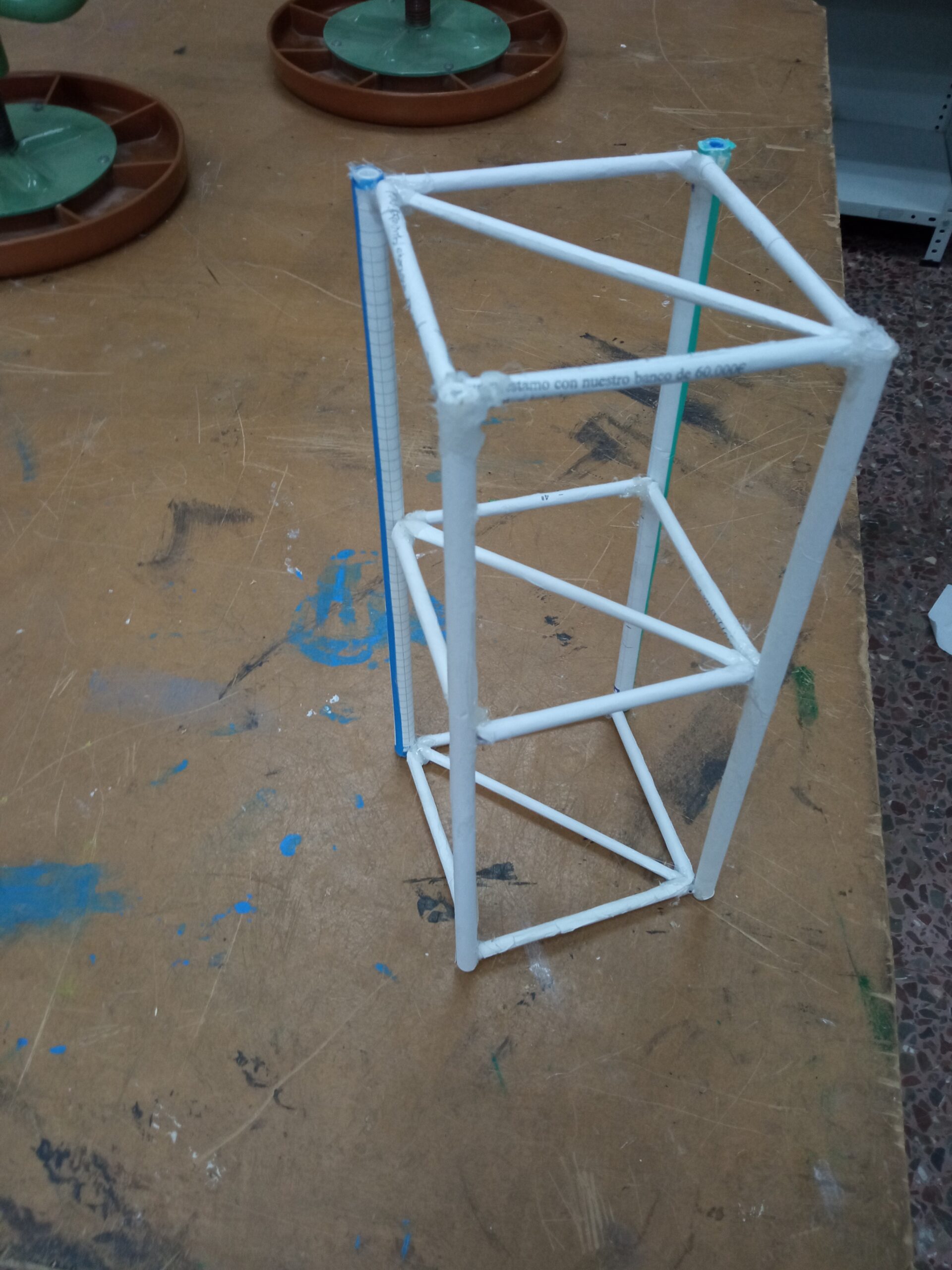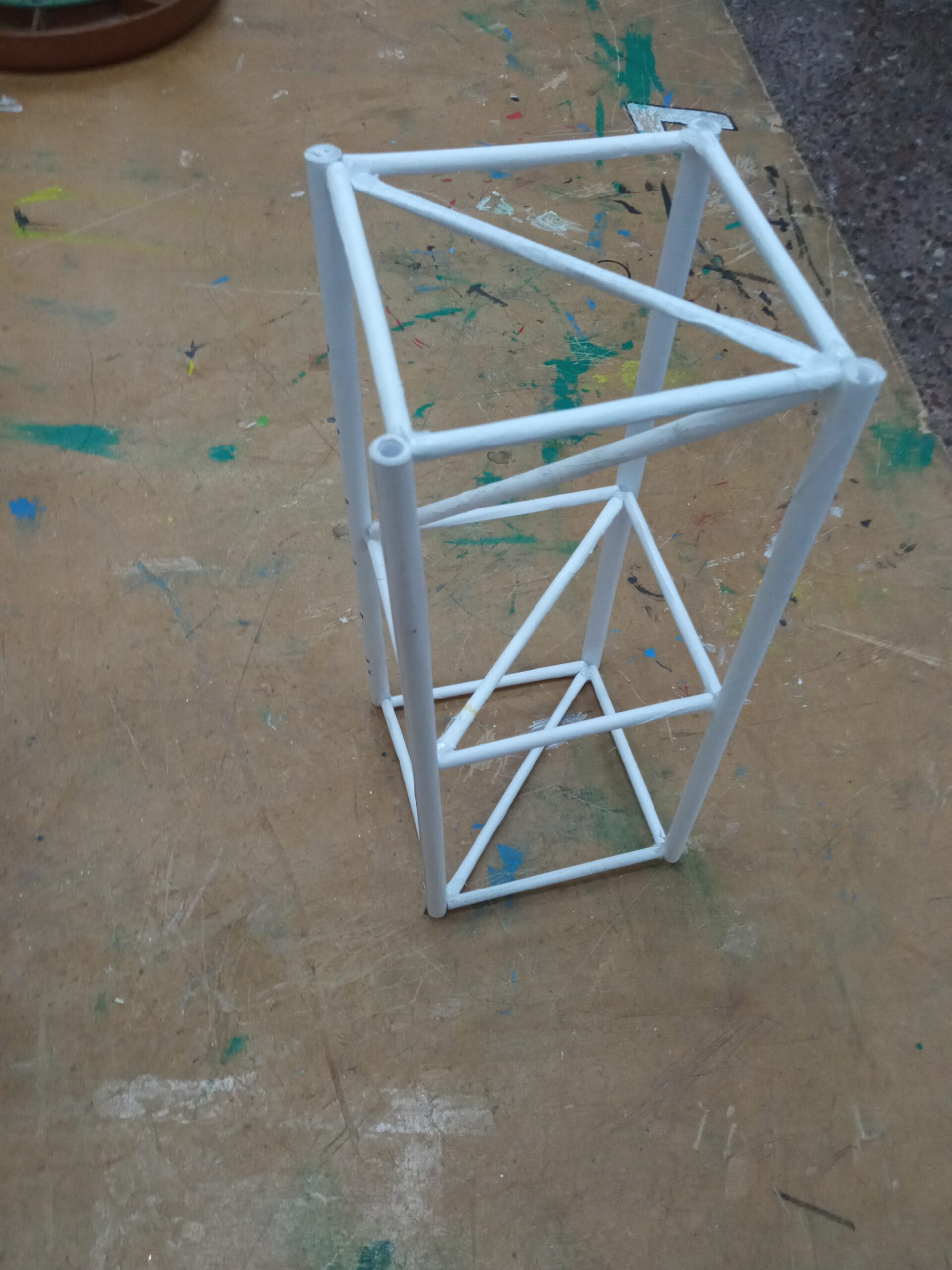 3. Montamos las torres con los tubos más largos y aplicamos más triangulaciones.