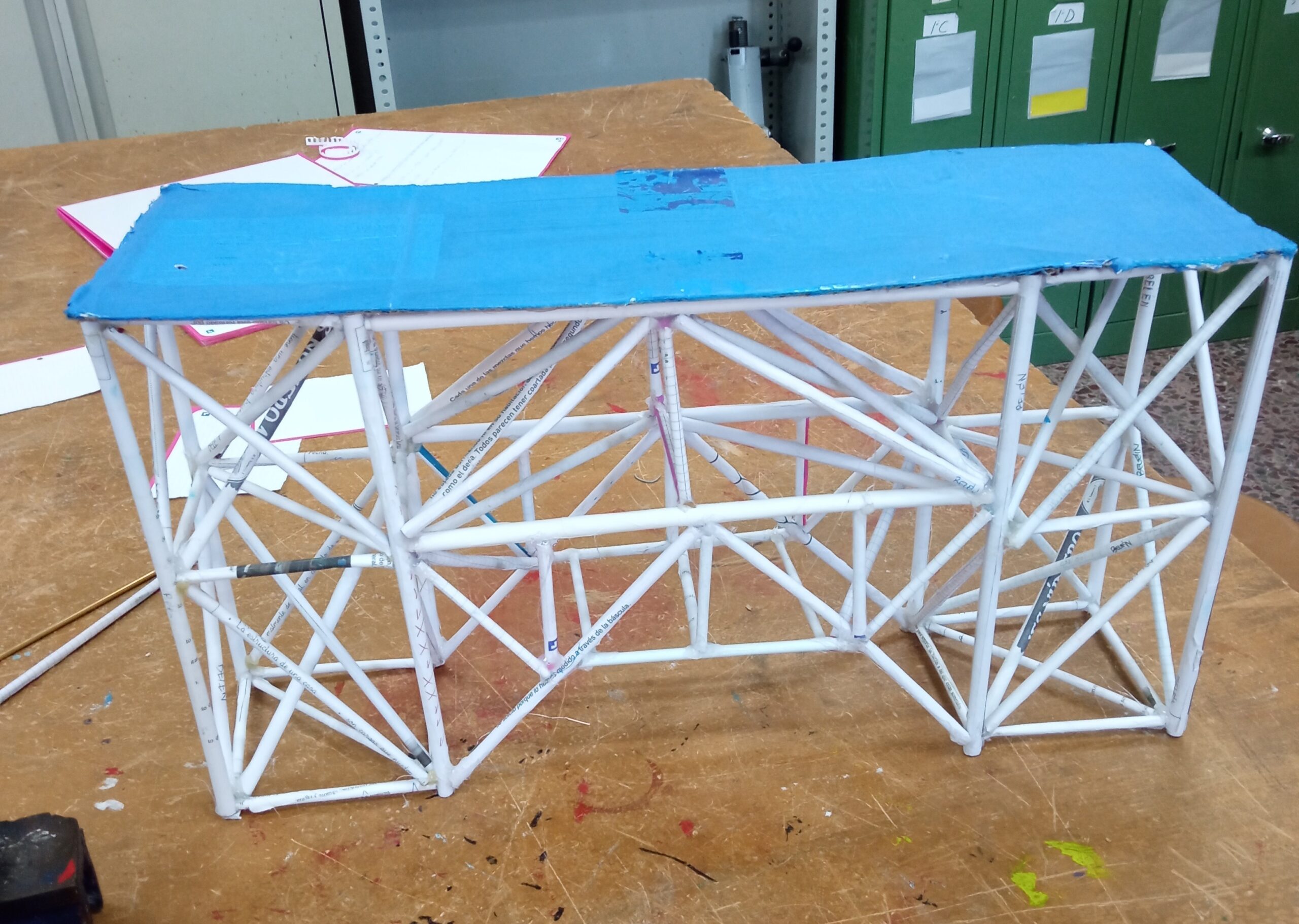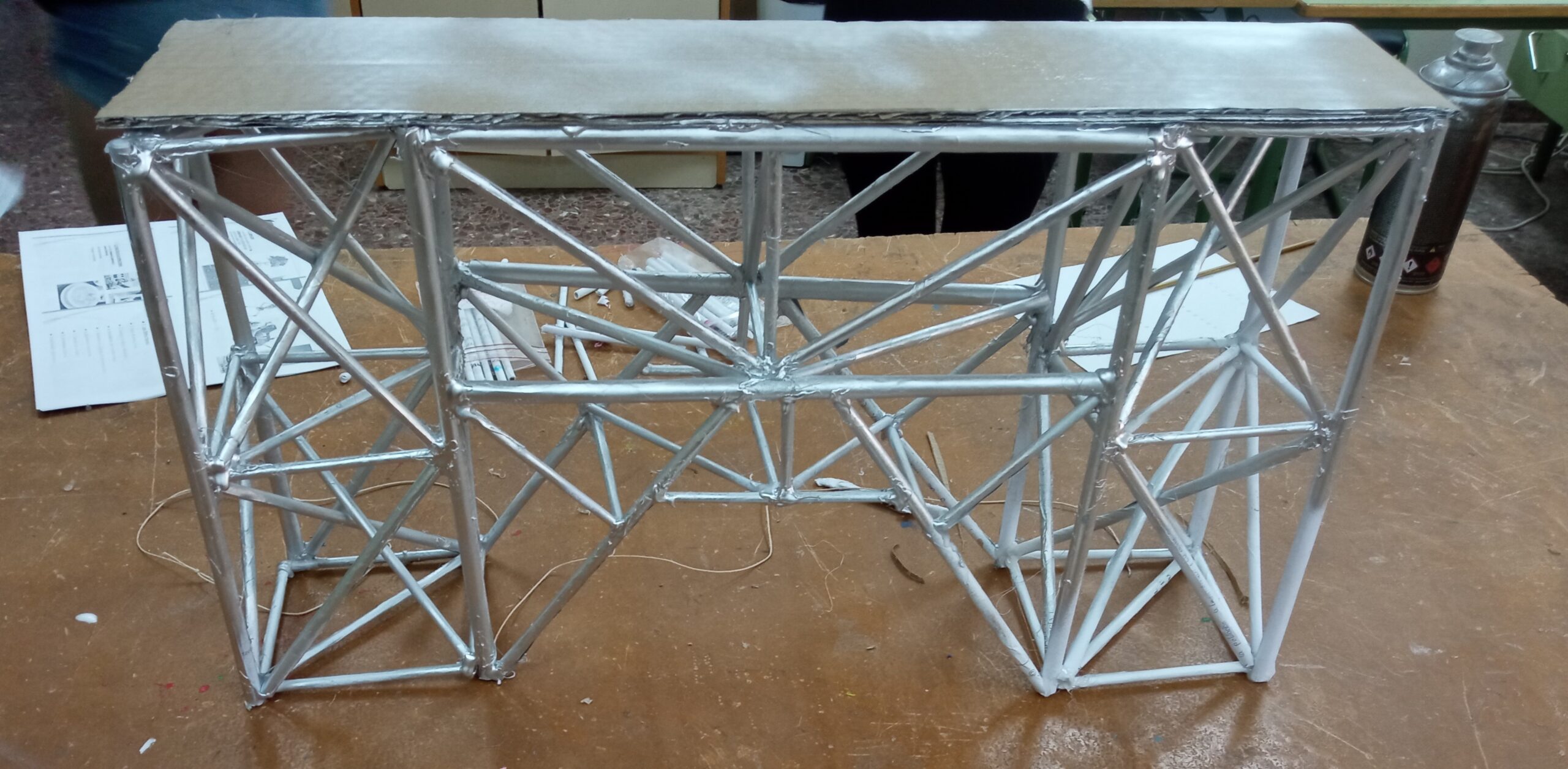 4. Conectamos las torres y la parte central entre sí y añadimos las triangulaciones que queramos.